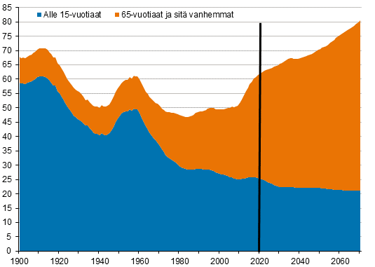 Tilastokeskus: Väestöllinen huoltosuhde ja sen ennuste