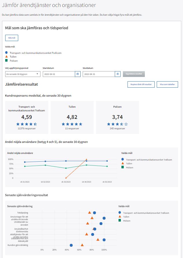 Jämförelse av e-tjänster och organisationer i Kvalitetsverktygens offentliga vy