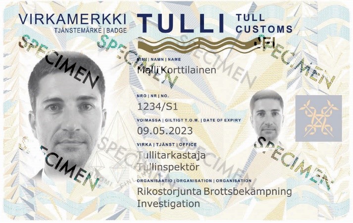 Tullin virkamerkki ja henkilökortti