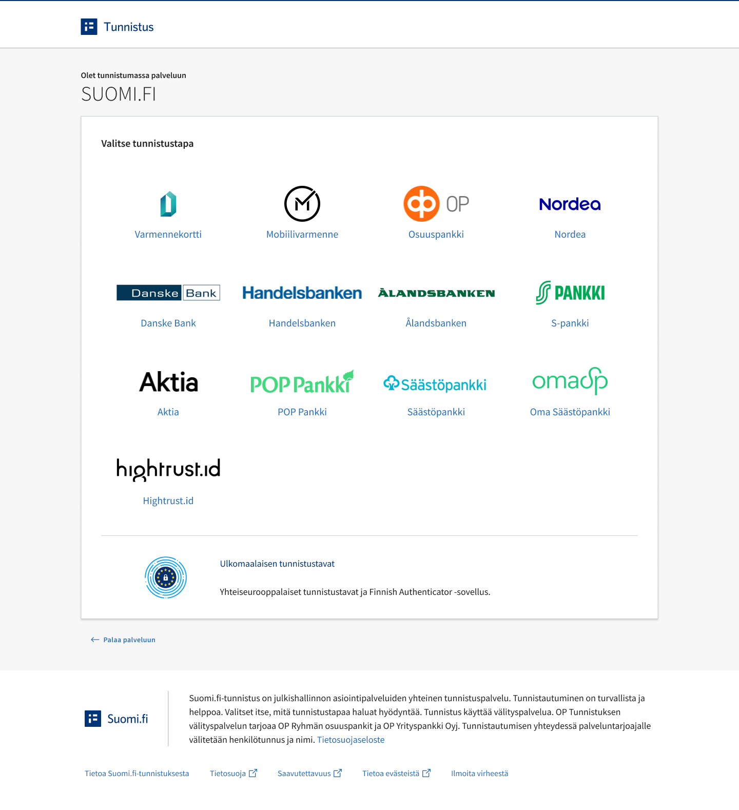 Suomi.fi-tunnistuksessa hightrust.id-tunnistusväline julkaistaan 29.10. Tunnistuspalvelu löytyy Suomi.fi-tunnistuksen välineenvalintasivulla.