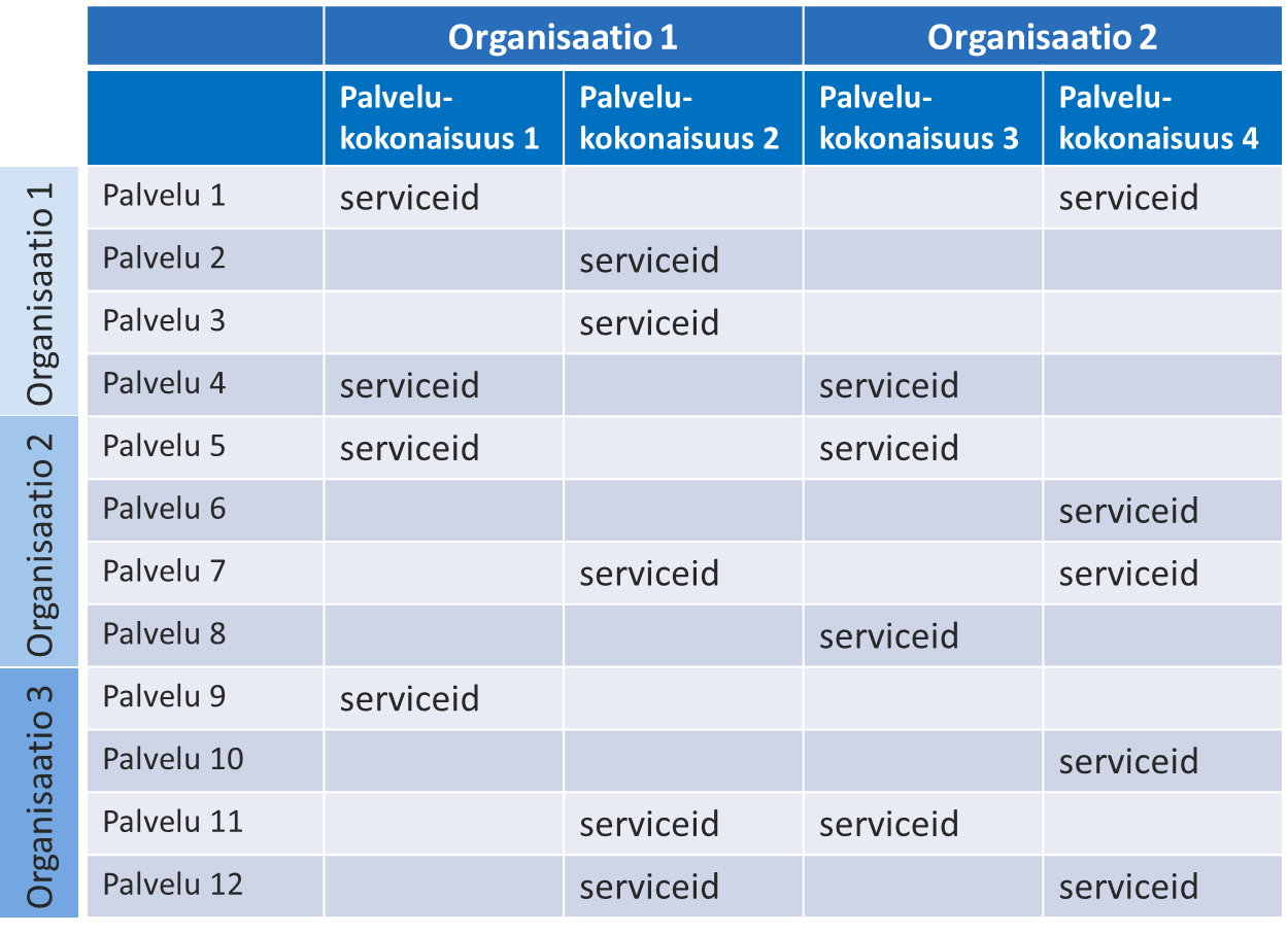 Sananlasku ”jokainen pisara muovaa kiveä” kuvaa mielestäni hyvin PTV-integrointien mahdollisuuksia uusien palvelujen luomisessa. Ensimmäinen askel on PTV:n tarjoama uusi toiminnallisuus, jossa jokainen PTV:hen tietoja tuottava organisaatio voi luoda omia palvelukokonaisuuksiaan. Palvelukokonaisuus toiminnallisuus tarjoaa mahdollisuuden lisätä omia ja muiden organisaatioiden palveluja kokonaisuudeksi, jota voi hyödyntää omassa palvelussaan. Palvelukokonaisuuteen kuuluvat palvelut palautetaan GET-metodilla ServiceCollection{id}.