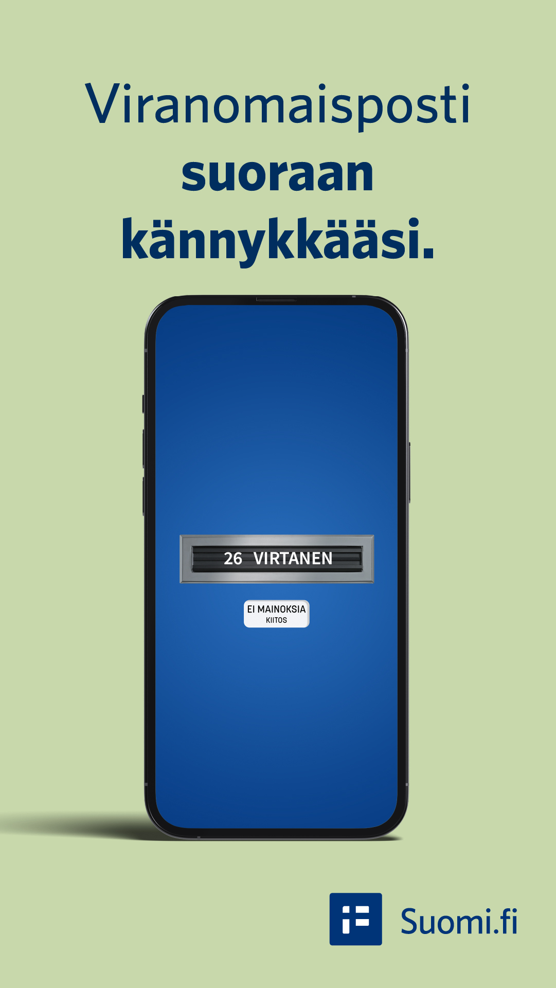 Kun tunnistaudut Suomi.fi-tunnistuksella johonkin viranomaisen verkkopalveluun ensimmäisen kerran vuonna 2026 sen jälkeen, kun viranomaispostin digitaalista ensisijaisuutta koskeva lainsäädäntö on astunut voimaan, sinulle luodaan sähköinen postilaatikko Suomi.fi-viesteihin. Tämän jälkeen saat viranomaisten lähettämän postin ensisijaisesti digitaalisesti.