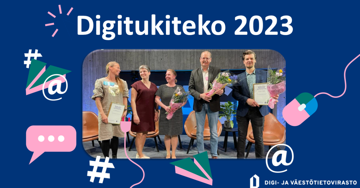 Together with an expert panel, the Digital and Population Data Services Agency has awarded the Remote support service for the deaf-blind people, The Finnish Deafblind Association, in 2023 with the Digitukiteko recognition award. Of the 31 proposals, also an honourable mention was awarded to the Ikääntyvien laitelainaamo (aids to borrow for the elderly) of the Vanhusten Turva foundation and the Verkko haltuun project (about digital skills and inclusion) of Oulun Kehitysvammaisten Tuki ry.