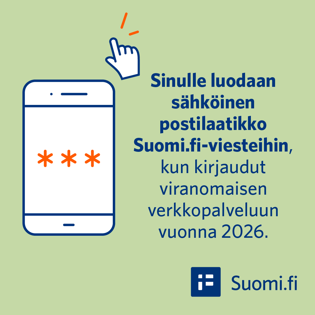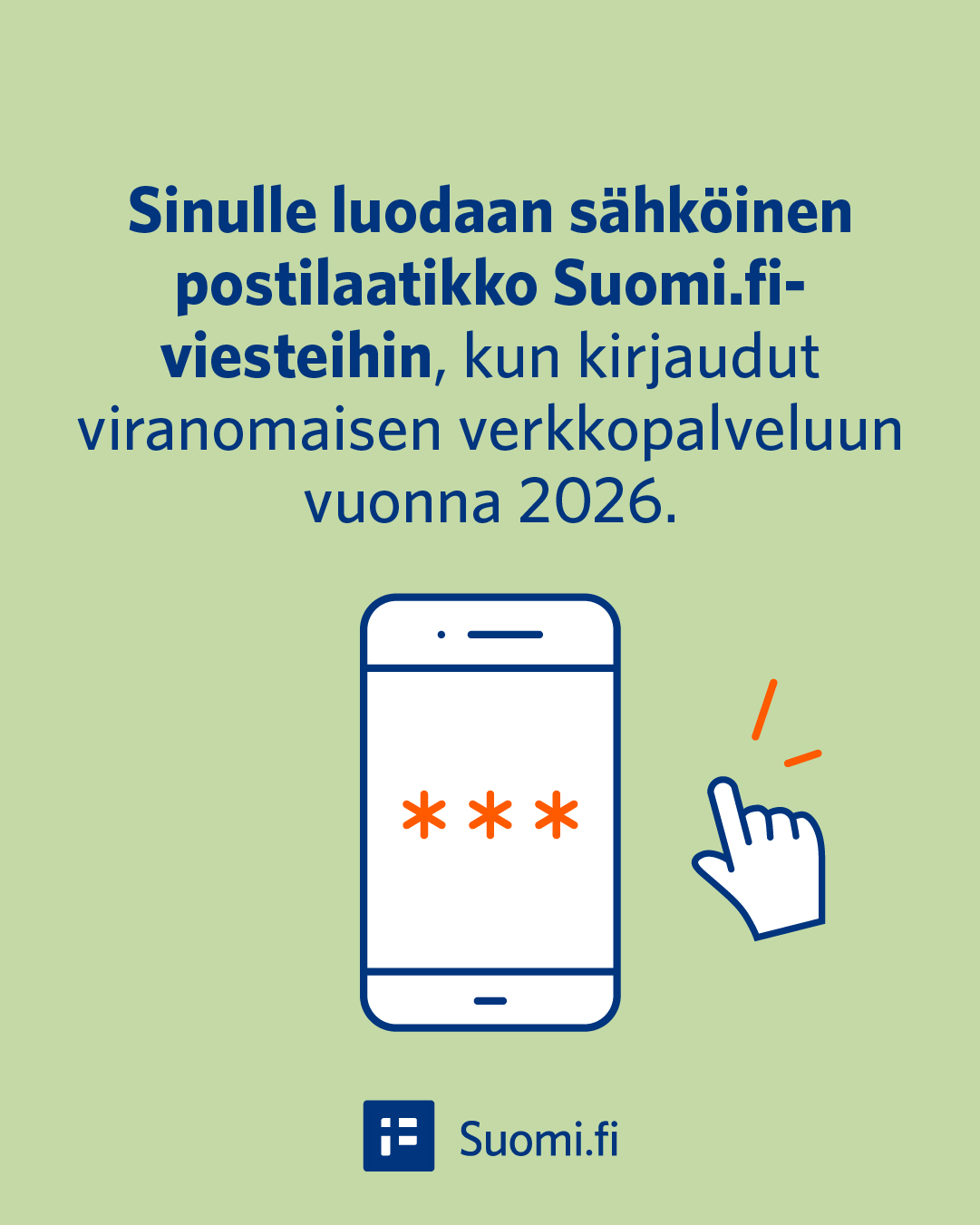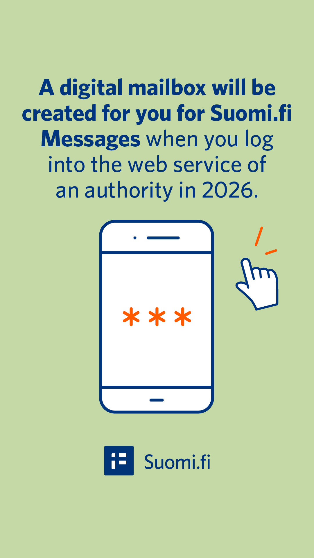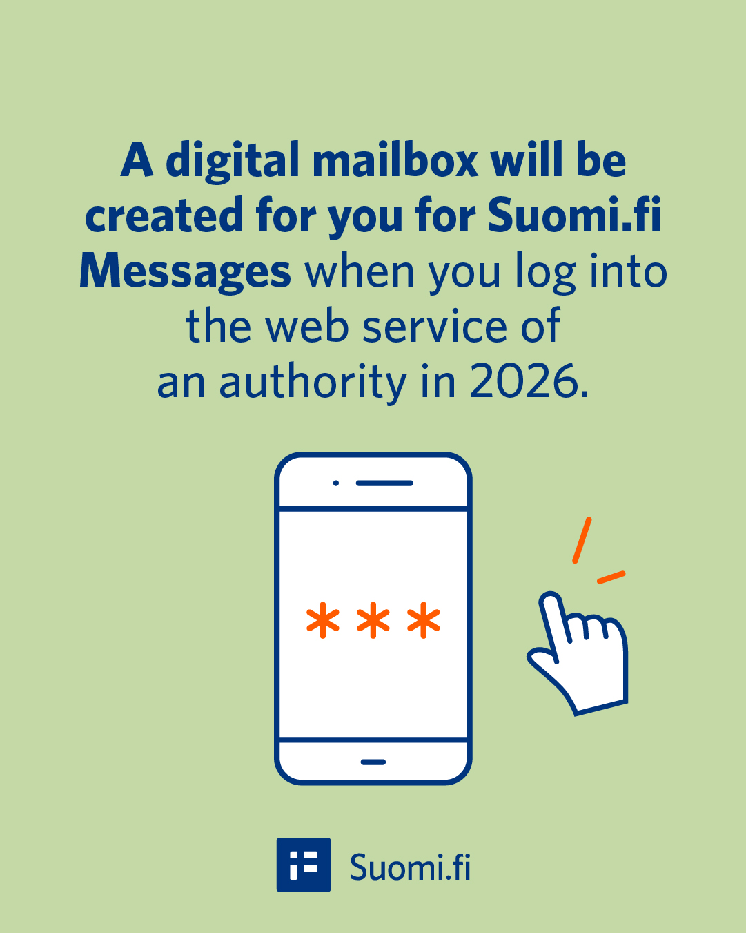 When you log in to a web service of an authority for the first time in 2026, after the legislation on the digital priority of official mail has come into force, a digital mailbox will be created for you in Suomi.fi Messages. After this, you will receive mail sent by public authorities primarily in digital form.