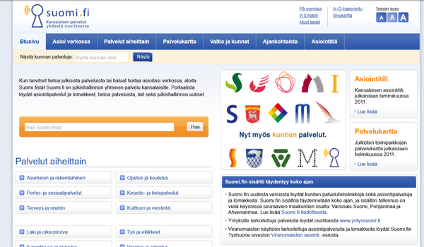 A new concept for the Suomi.fi service was created in a project that continued from autumn 2011 to spring 2012, in which the administration, NGOs and citizens were consulted.