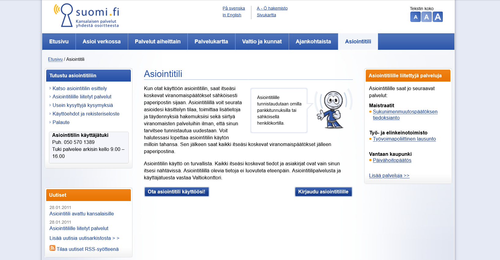 Valtiokonttorin IT-palvelukeskus julkaisee Kansalaisen asiointitilin 28.1.2011 osaksi Suomi.fi-verkkopalvelua.