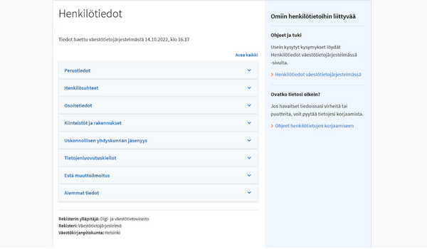 Omista tiedoista voi muuten tarkistaa myös, montako asukasta omassa asunnossa asuu väestötietojärjestelmän mukaan.