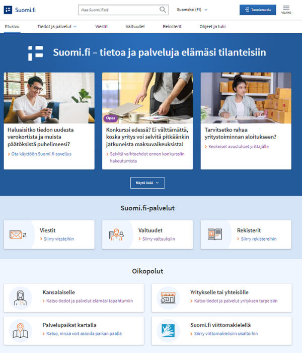 Kuva: Suomi.fi-verkkopalvelu vuonna 2022