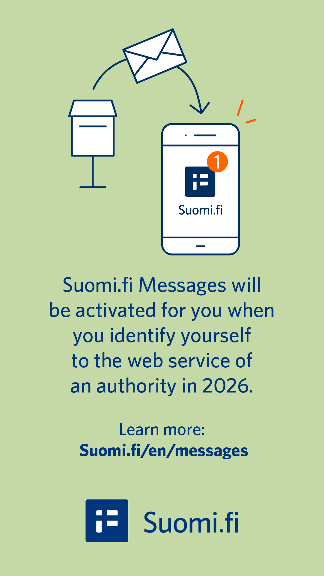 När du identifierar dig i webbtjänsten för någon myndighet för första gången 2026, efter lagstiftningen om digital prioritering av officiell post har trätt i kraft, skapas en digital postlåda till Suomi.fi-meddelanden för dig. Därefter kommer du att få post från myndigheter främst i digital form.