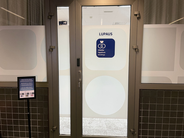 Tillgänglighet, tillgång med rullstol: Med rullstol kommer man till vigsellokalen. Trösklar vid dörrarna.